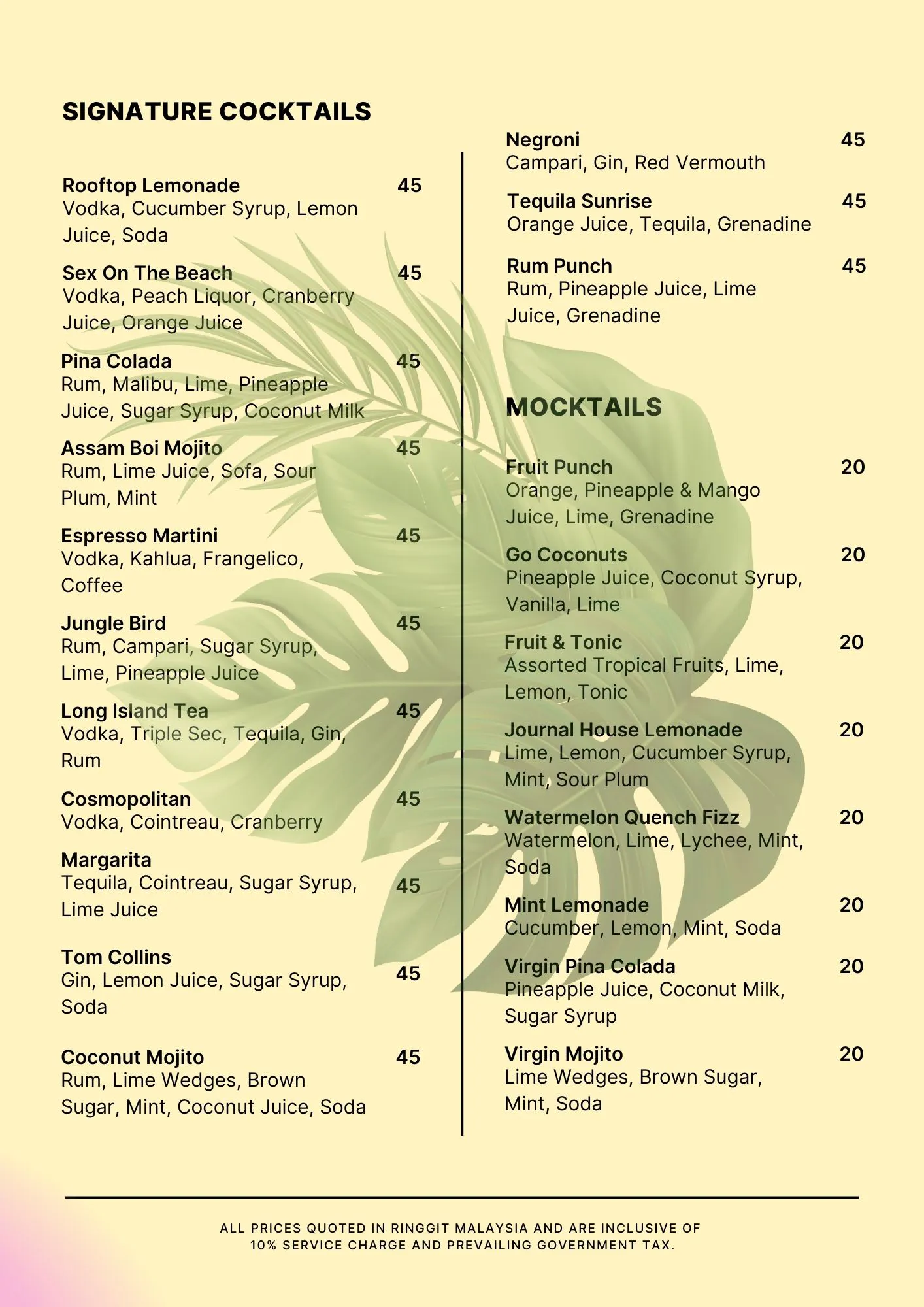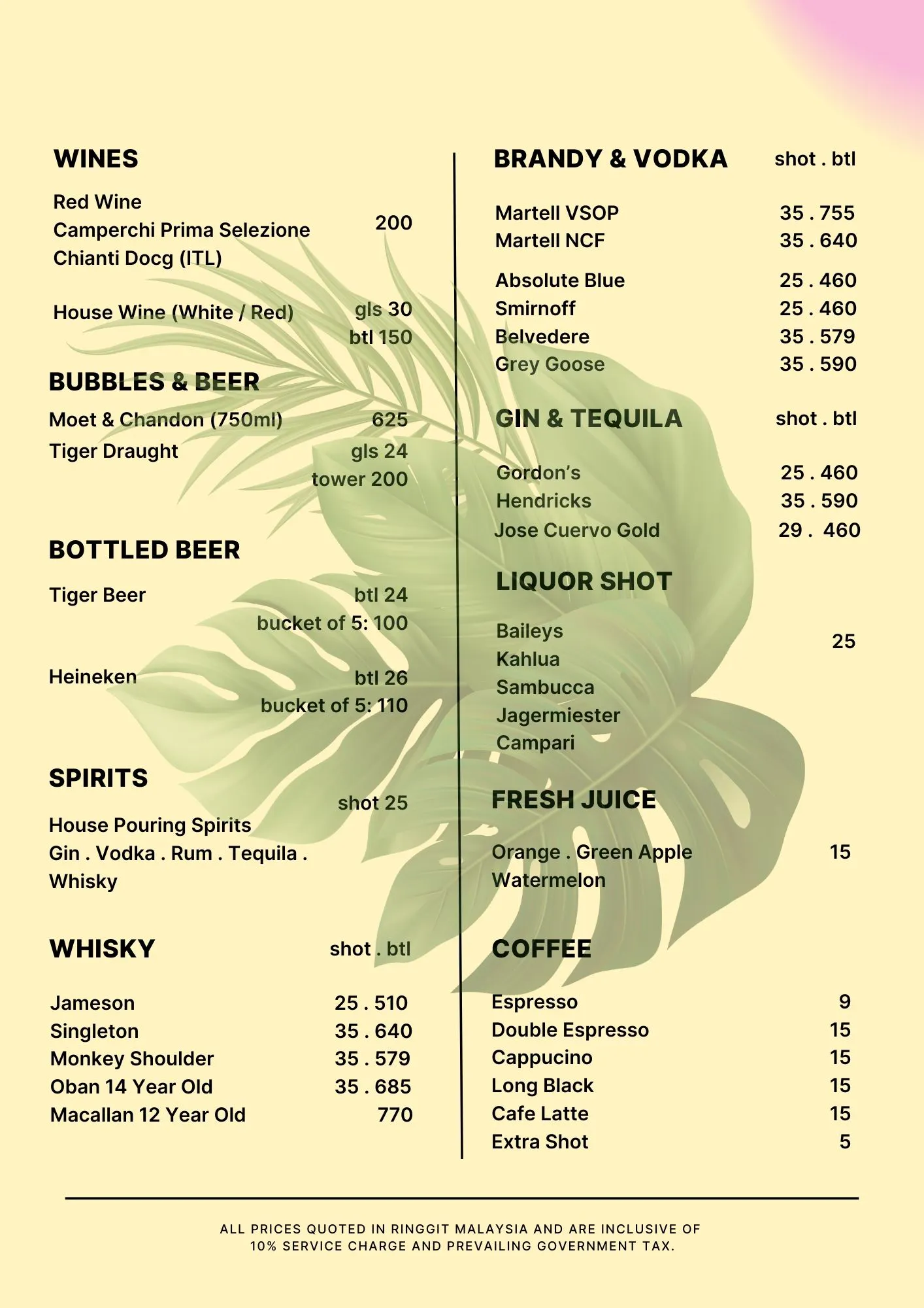 RM80++ per pax includes 1 drink